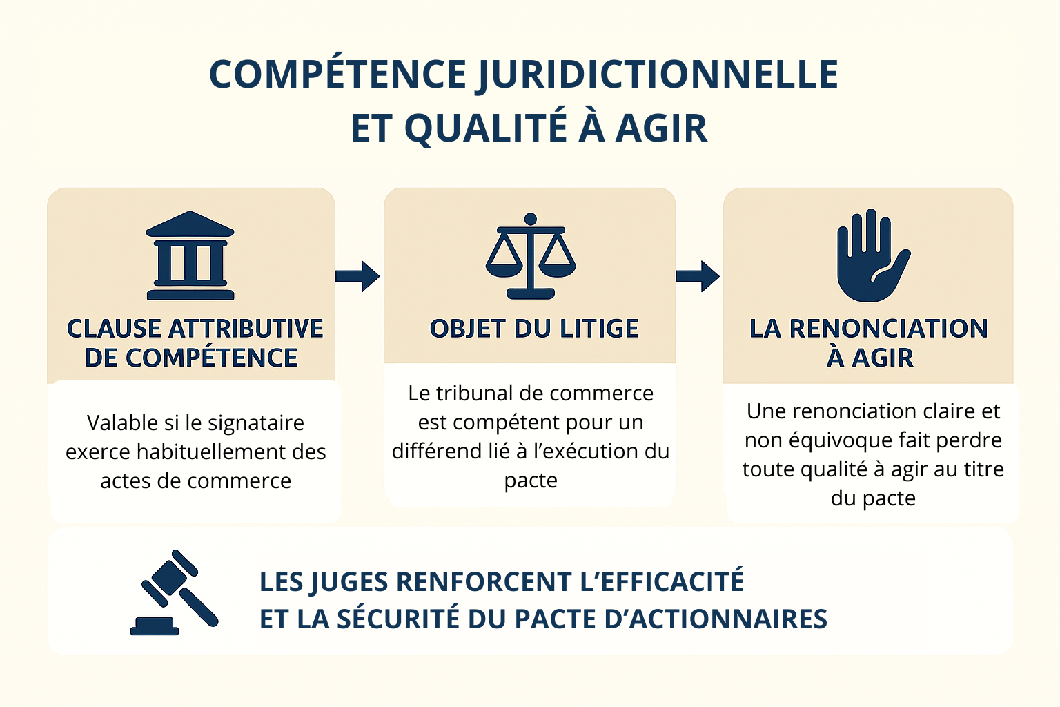 Seules les décisions les plus instructives et porteuses d’enseignement ont été retenues, qu’elles aient ou non été publiées. L’objectif n’est pas l’exhaustivité, mais la mise en perspective de la manière dont les juges, et notamment les cours d’appel et la Cour de cassation, affinent progressivement le régime juridique des pactes d’associés.